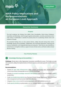This brief condenses key findings from MAIA’s Policy Roundtables, Policy-Science Dialogues, Assemblies and Workshops, which brought together policymakers, scientists, practitioners and a wide variety of stakeholders to identify the priority levers for accelerating climate action and resilience in Europe.