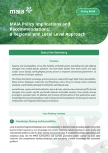 Regions and municipalities are on the frontline of climate action, translating EU and national strategies into context-specific solutions. This brief distils lessons from MAIA events and case studies across Europe, and highlights priority actions to empower subnational governments as central drivers of Europe’s resilience.
